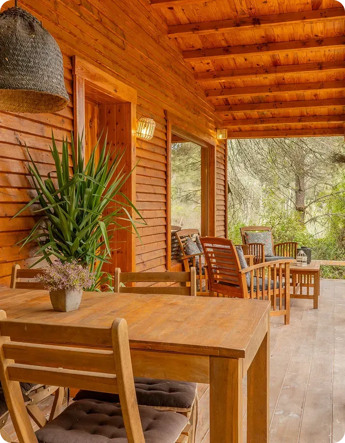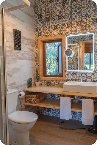 Situada en plena finca forestal, con porche privado y acceso directo al entorno natural.