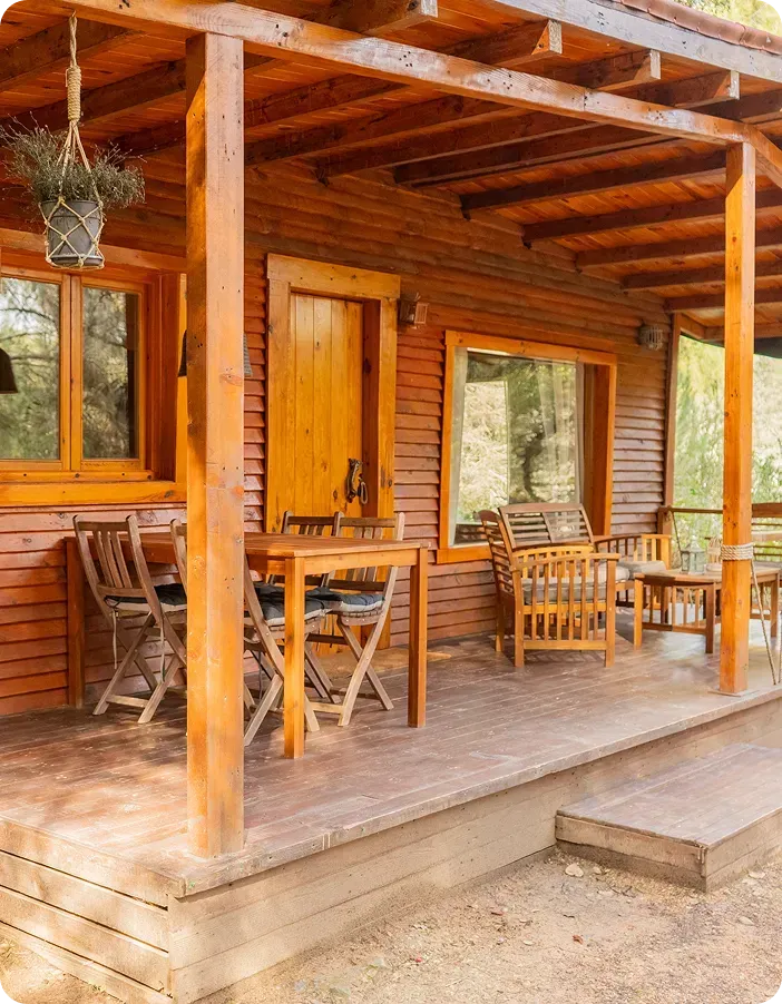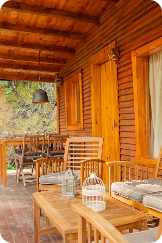 Cabaña íntima y romántica, rodeada de bosque, con porche privado y máxima tranquilidad.